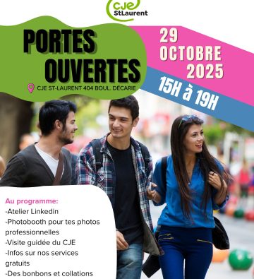 Projet Connexion Emploi or Jeunes en Mouvement vers l’Emploi (JMVE) program is a training opportunity with a financial allowance based on your participation. It combines practical workshops and personalized support.